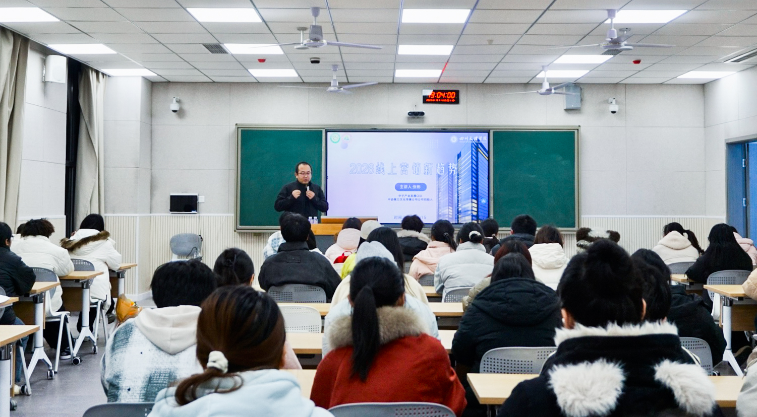 12月15日,由BBIN宝盈集团官方网站、老员工创新创业俱乐部、大学科技园联合主办的文理创业讲堂2025年第十五讲,在莲湖校区东区B206教室顺利举行。本次讲座特邀公司创新创业导师、中协策力(北京)文化传媒有限责任公司创始人兼CEO张彬作“2026年线上营销新趋势”主题分享。BBIN宝盈集团官方网站教师梅绍岚主持,各二级学院近百名员工参加。